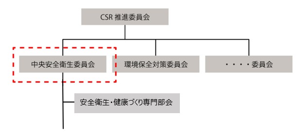 - 中央安全衛生委員会配下に健康づくり委員会を設置して従業員の心身の健康増進を強化している。